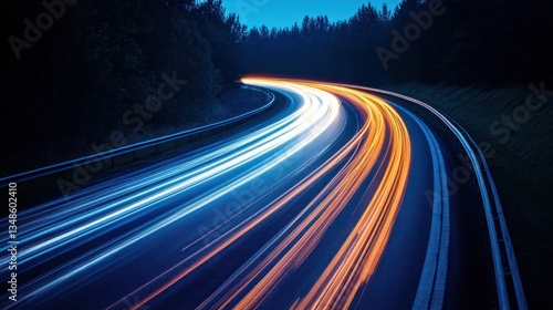 highway, light, speed, night, road, traffic, motion, blur, automotive, transportation, travel, journey, energy, movement, dynamic, fast, swift, blue, orange, dark, curve, line, trail, streak, path, way, asphalt, lane, vehicle, car, driving, long exposure, photo, night time, dark blue, scenic, landscape, black, nature