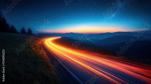highway, night, mountain, sunset, road, light, trail, travel, landscape, scenic, car, drive, speed, journey, adventure, freedom, asphalt, curve, star, sky, dark, nature, background, motion, blur, long, exposure, panorama, view, beautiful, amazing, dramatic, colours, bright, dynamic, energy, power, fast, rural, serenity, calm, peaceful, hope, future, progress, success, destination, exploration