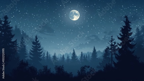night, sky, star, moon, forest, tree, pine, dark, silhouette, nature, timberland, spruce, dusk, evergreen, moonlit, magical, mystical, aethereal, peaceful, serene, tranquil, dreamy, mysterious, romantic, solitude, beauty, awe