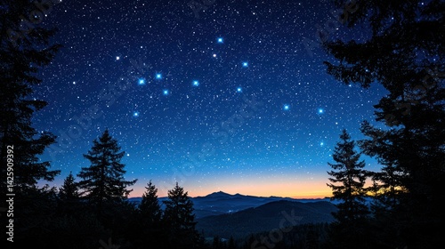 night, sky, star, constellations, mountain, tree, forest, nature, landscape, starry, cosmos, universe, galaxy, planet, astronomy, beautiful, scenic, view, twilight, dawn, dusk, clear, dark, deep, amazing, breathtaking, silhouette, pine, wood, outdoors, peaceful, serene, evening, horizon, light, colourful, astrophotography, astronomic