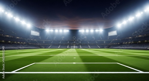 Night Soccer Stadium: Dramatic, Empty, Floodlit Field, Ready for Game