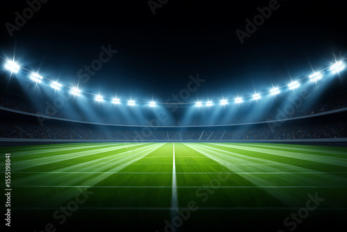 Night Stadium: Dramatic Soccer Field, Bright Floodlights, Packed Stands, Epic Atmosphere.