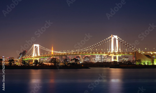 Night view Rainbow Bridge and Tokyo City Skyline background, Odaiba