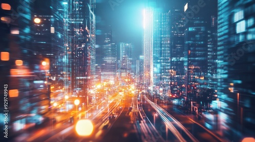 city, night, light, blur, motion, skyscraper, building, urban, city landscape, traffic, street, road, car, glow, neon, abstract, modern, futuristic, dynamic, energy, vibrant, speed, movement, tied-up, metropolis, technology, digital, datum, pixel, code, line, structure, pattern, texture, background, art, design