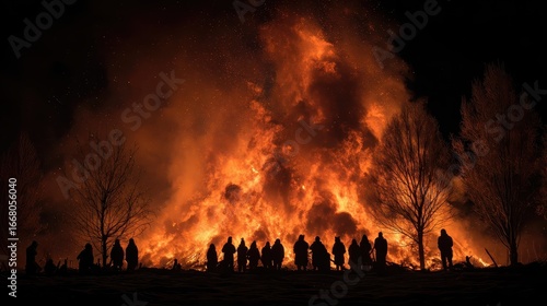 fire, event, dramatic, night time, blazing, flames, wonder, visual, gathering, interaction, passion, mystery, excitement, lighting, impact, darkness, urgency, community, exploration, glow, tension, warmth, rescue, engagement, blaze, emergency, transformation, risk, anticipation, thrill, possibility, intensity, sound, shadow, storytelling, reaction, people, movement, life, longing, heat, safety, family, balefire, orange, flicker, journey, adventure