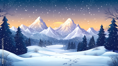 snow, night, mountain, pine, forest, landscape, winter, star, cold, scenic, moonlight, peaceful, serene