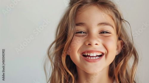Niña sonriendo sobre un fondo liso