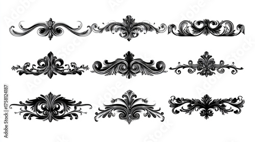flourish, ornate, decorative, design, element, black, white, scroll, vintage, retro, elegant, graphic, illustration, border, frame, pattern, vector, art, drawing, floral, swirl, antique, classic, style, motif, isolated, collection, set, calligraphic, divider, header