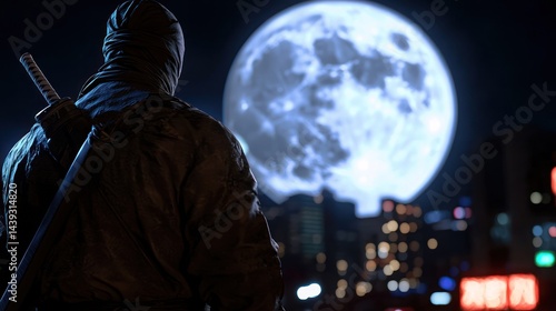 ninja, night, moon, city, stealth, action, warrior, silhouette, urban, full, japanese, samurai, adventure, fantasy, shadow, superhero, crime, hero, dark, male, asian, mysterious, dramatic, back, perspective, sharpened, street, night time, midnight, courage, cool, powerful, serious, strong, brave, stealthy, city landscape, darkness, suspense, fearless, silent