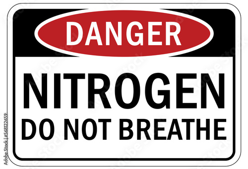 Nitrogen warning chemical sign and labels do not breathe
