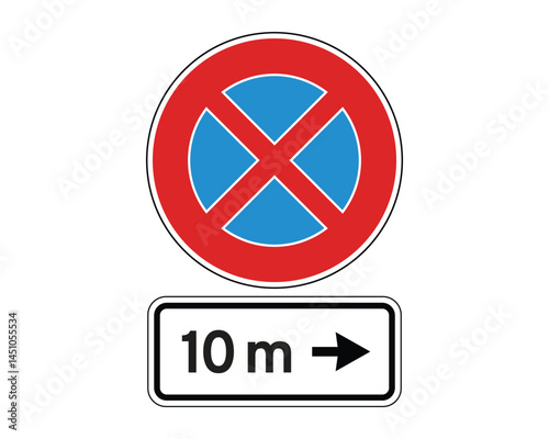 No Parking Road Sign with 10-Meter Right Restriction – High Quality Vectorial Stock Image