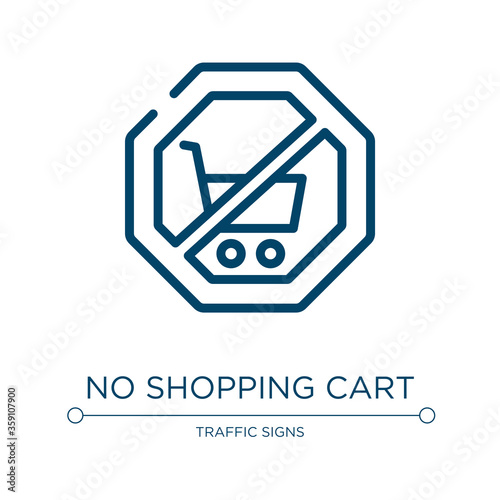 No shopping cart icon. Linear vector illustration from signal and prohibitions collection. Outline no shopping cart icon vector. Thin line symbol for use on web and mobile apps, logo, print media.