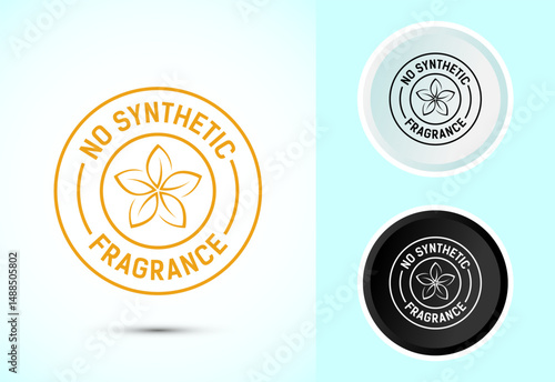 No synthetic fragrance icon design illustration. Synthetic fragrance free label sign symbol in color black and white
