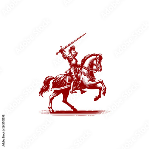 Noble Knight on Horseback Holding Sword, Ready for Battle and Displaying Courage