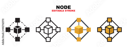Node icon set with different styles. Icons designed in filled, outline, flat, glyph and line colored. Editable stroke and pixel perfect. Can be used for web, mobile, ui and more.