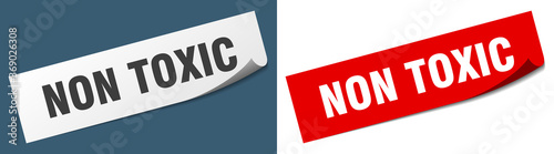 non, toxic, no, sticker, label, peeler, signs, tags, badge, banner, design, element, emblem, flier, insignia, isolated, note, notice, page, paper, peel, price tag, rectangular, set, square, template, vector, vignette, white background, red, white
