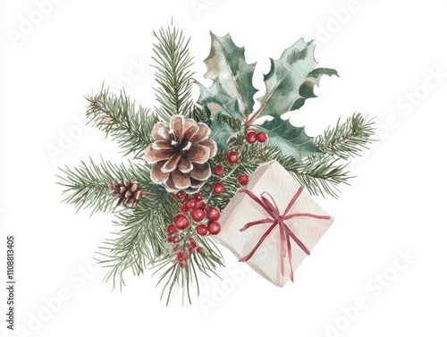 Nostalgic Watercolor Holiday Memories - Detailed Christmas Artwork on White Background