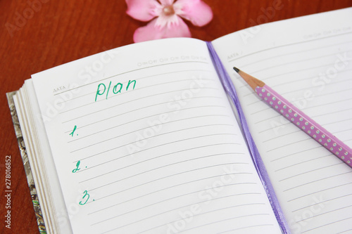 Notebook for business and notes with white pages and pencil, penster