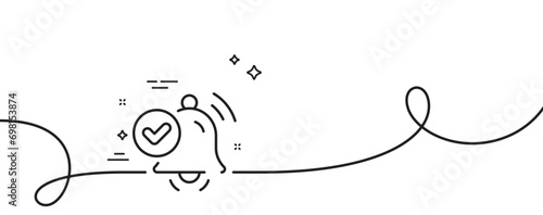 Notification received line icon. Continuous one line with curl. Selected reminder sign. Alarm bell symbol. Notification received single outline ribbon. Loop curve pattern. Vector