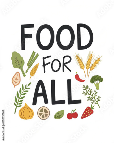 food, for, all, produce, vegetable, fruit, grain, healthy, eating, nourishment, organic, fresh, ingredient, cooking, security, agriculture, farming, harvest, seasonal, variety, abundance, nourishment, diet, vegetarian, vegan, health, wellness, lifestyle, concept, motto, phrase, message, celebration, community, equity, access, sustainability