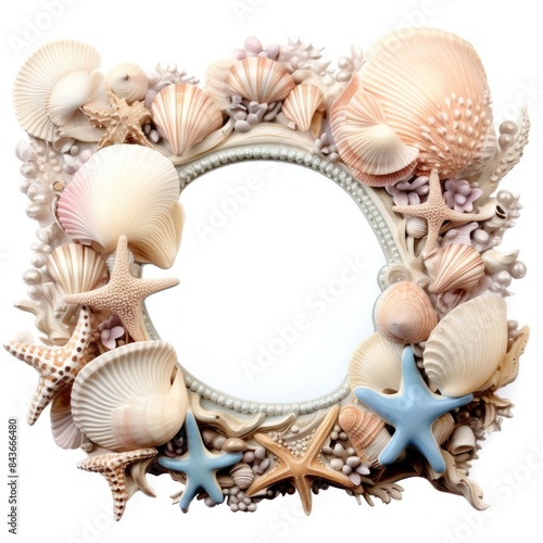Nouveau art of sea shell frame seashell white background invertebrate.
