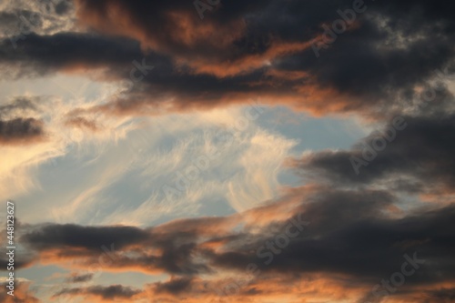 heaven, sunset, cloud, sun, nature, light, orange, evening, dramatic, dusk, landscape, storm, weather, colours, heaven, sunny, summer, red, cloudy, blue, yellow, environment, covered, night, beauty, outside, horizon, space, tuned, wind, drop, cumulus, movement