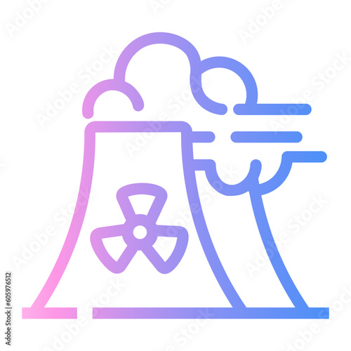 nuclear, power plant, energy, cooling tower, radiation, factory, radioactive, ecology, icon, gradient, line, graphic, illustration