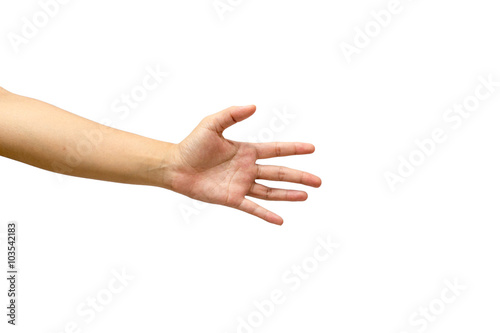 arm, attention, background, business, caucasian, closeup, communication, concept, count, cut-out, female, finger, gesture, gesticulate, hand, human, idea, index, isolated, item, male, man, nail, number, 1, palm, people, person, showing, signs, stop, symbol, thumb, touch, white, young, 5