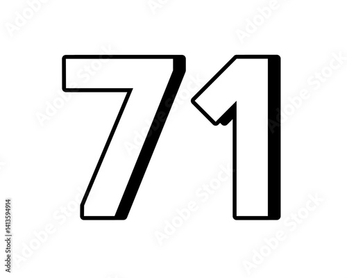 number 71 on transparent background,white color with a bold, 3D appearance and shadow effects for added depth and dimension for design elements