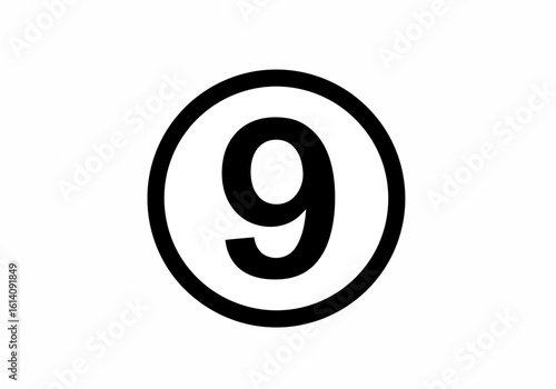 Number nine enclosed in a circle with simple design on a plain white surface for graphic use cases