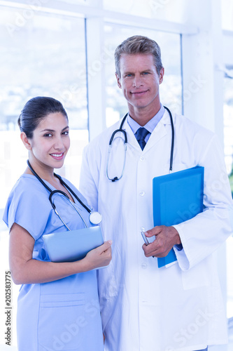 doctor, uniform, clinic, stethoscope, profession, expertise, professional occupation, practitioner, medicals, specialist, health care, hospital, health, labcoat, care, working, smiling, happy, confidence, confident, cheerful, teamwork, together, portrait, holding, clipboard
