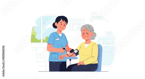 nurse, blood pressure, medical office, caregiver, health care, clinic, medical equipment, professional, friendly, bright, interior, health, medicals, patient, hospital, doctor, medicine, nursing, clinical, wellness, care, compassion, helping, elderly, senior, sitting, calm, focused, diagnostic, treatment, exam, doctor's appointment, medical practice, hospital room, medical care, medical professional, medical treatment