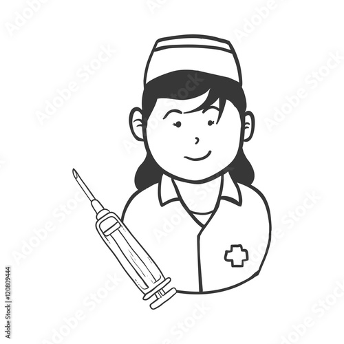 Nurse with uniform and syringe icon. Medical and health care theme. Isolated design. Vector illustration