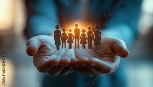family, silhouette, hand, holding, people, children, glowing, cut-out, protection, care, support, generation, group, oneness, indoor, blurred background, closeup, warm light, soft focus, human relationships, connection, togetherness, childhood, parenthood, education, community, future, leadership, guidance, upbringing, growth, hopeful, caring, protective, conceptual, symbolic, warm, soft, nurturing