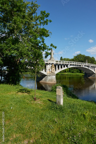Nymburk, Czech Republic - May 30, 2023 - the road bridge in Nymburk carries the road over the Elbe, on a sunny spring afternoon