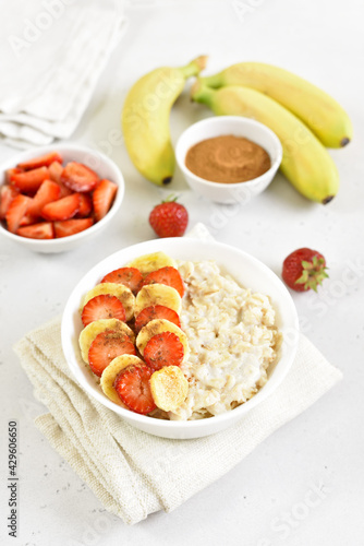 Oatmeal porridge with strawberry and banana