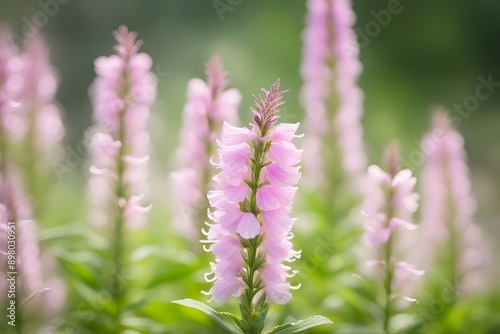 Obedient plant flower bokeh background, AI Generated