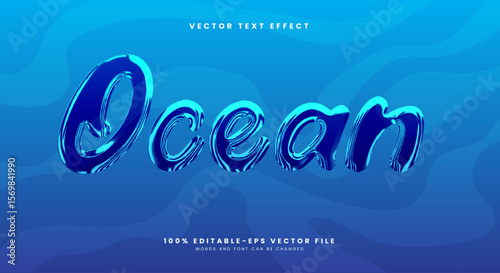 Ocean Chrome Style 3d editable text effect template Suitable for wavy background