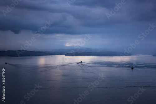 sky, ship, seattle, scenic, river, peace, nautical, nature, natural, mountain, mist, landscape, journey, holiday, hill, fishing, dusk, day, cloudy, boat, america, wide, water, huge, vacation, us, trip, travel, transport, tranquil, tour tourism, surface