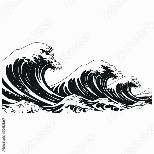 Ocean waves black and white illustration sea wave drawing japanese wave art ocean graphic pattern design silhouette