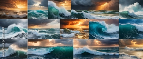 Ocean Waves Collage: Powerful Waves, Dramatic Seascapes, Changing Light
