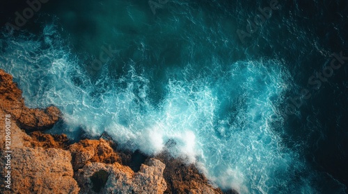 ocean, water, wave, sea, surf, coast, beach, nature, blue, travel, landscape, rock, coastline, shore, cliff, foam, splash, turquoise, aerial, view, texture, rough, geology, summer, seascape, vacation, paradise, background, scenic, marin, liquid, environment, holiday, powerful, breaking, horizon, natural, water, top, beautiful, wild, stone, island, movement, vibrant, current, wilderness, light