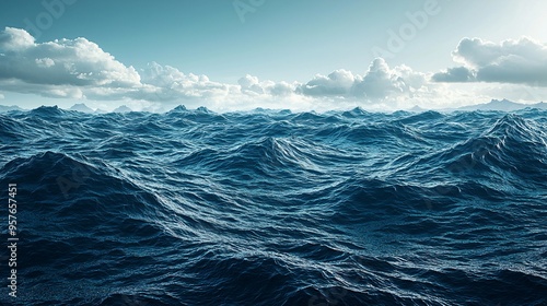 ocean, wave, water, blue, sky, cloud, horizon, sea, nature, landscape, foam, white, deep, huge, calm, watery, stormy, sun, bright, day, sunlight, stillness, calmness, serenity, peace, peacefulness, beauty, magnificent, natural, scene, view, scenery, background, surface, texture, pattern, turbulence