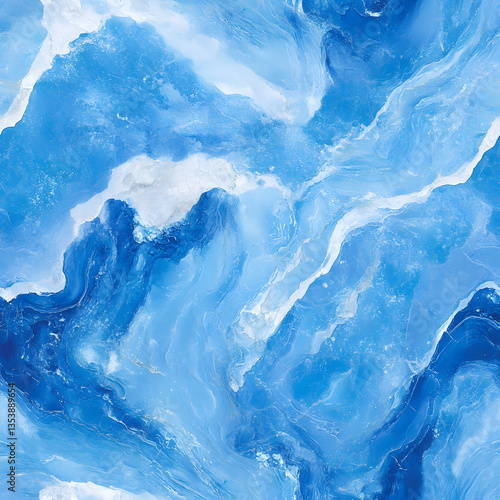 Ocean-inspired marble, deep blue with foamy white and silver veins, resembling waves.