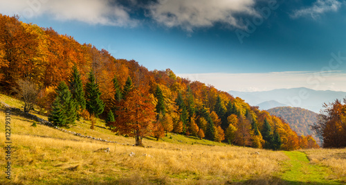 October autumn scenery in remote mountain area in Transylvania