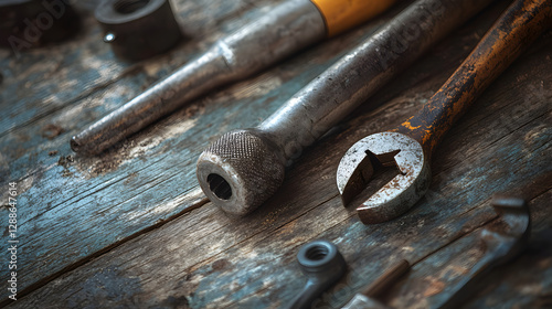tool, like, plier, screwdriver, wrench, against, concrete, background, showing, texture, wear, use, their, surface