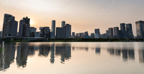 city, skyline, bay, sunset, city landscape, architecture, water, downtown, modern, urban, harbor, district, building, landmark, business, skyscraper, travel, sky, financial, office, waterfront, landscape, scenic, evening, dusk, dawn, orange, twilight, tower, coast, famous, sea, metropolis, scenery, tour tourism, outdoors, day, destination, asia, china, copy space