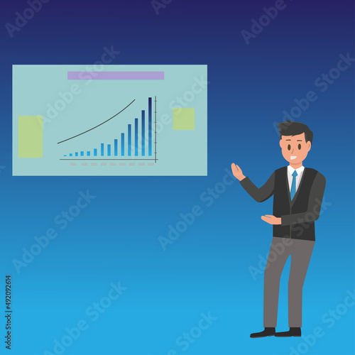 business, businessman, graph, chart, success, growth, presentation, people, finance, person, diagram, cartoon, vector, illustration, market, office, arrow, profit, computer, hand, laptop, suit, graphic, financial, businesswoman, work