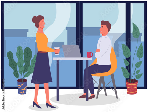 Office staff, work and communication. Head and subordinates. Various workers, managers team. Top managers employees of different levels. Office workers. Co-workers. Colleagues discuss project teamwork