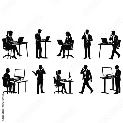 silhouette, people, vector, woman, illustration, chair, sitting, businessman, meeting, computer